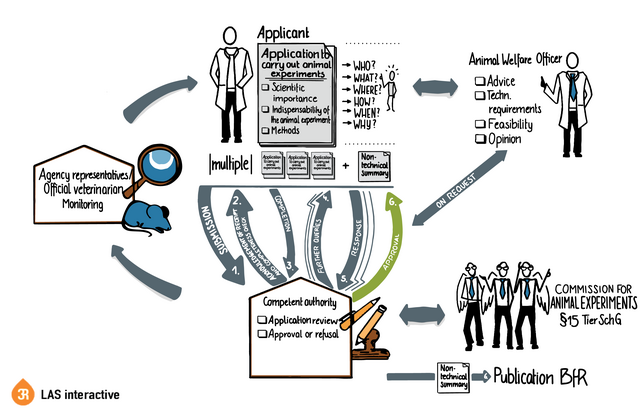 The learning unit is in the context of comprehensive training in animal experiments, including a practical part that is usually carried out by the employer / course organizer concerned and is open only to participants for whom the practical training is guaranteed.