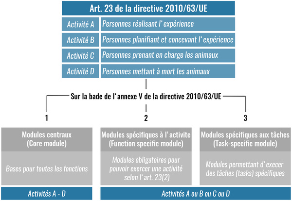 Exemple 2: le module pratique sur l'euthanasie conforme à la protection des animaux n'est pas prévu pour l'activité A; c'est pourquoi les personnes mettant à mort des animaux dans le cadre de leur activité doivent suivre ce module.